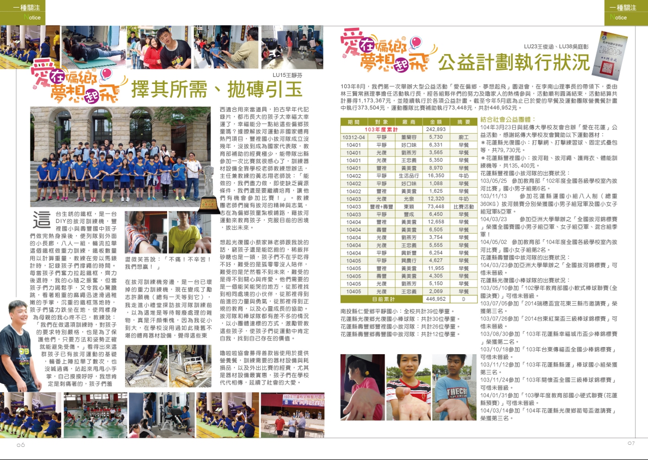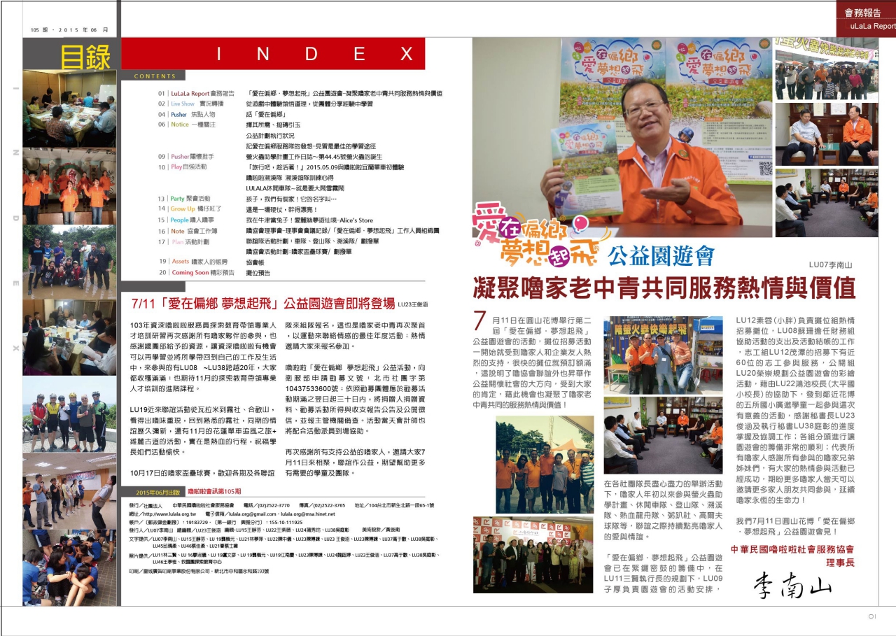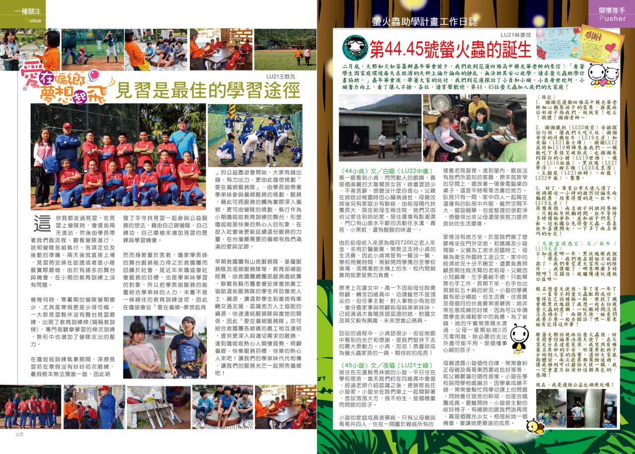 此外,本期精彩內容包括~關懷弱勢計劃:『愛在偏鄉,夢想起飛』『第44、45號螢火蟲的誕生』;