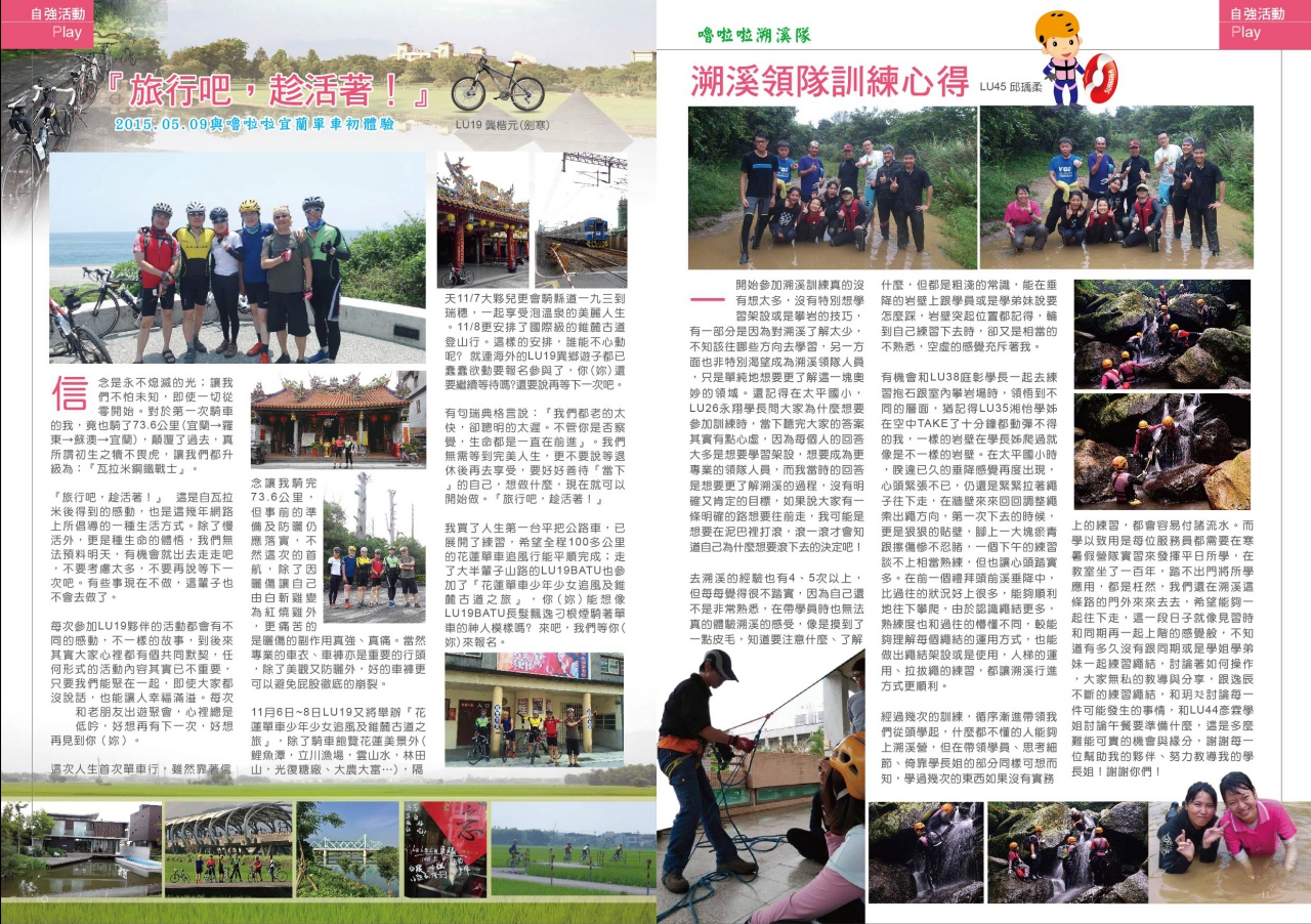 嚕家盛事:『資深嚕啦啦服務員培訓研習』『嚕啦啦宜蘭單車初體驗』『LULALA車隊大鬧雪霧』『嚕啦啦溯溪隊訓練心得』