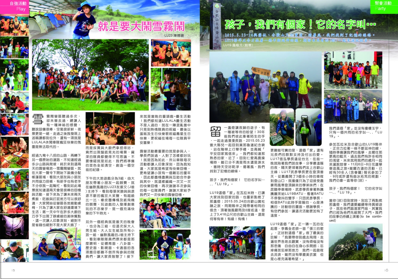 各項活動計劃:『嚕啦啦車隊、登山隊、溯溪隊』『嚕家盃壘球賽』
