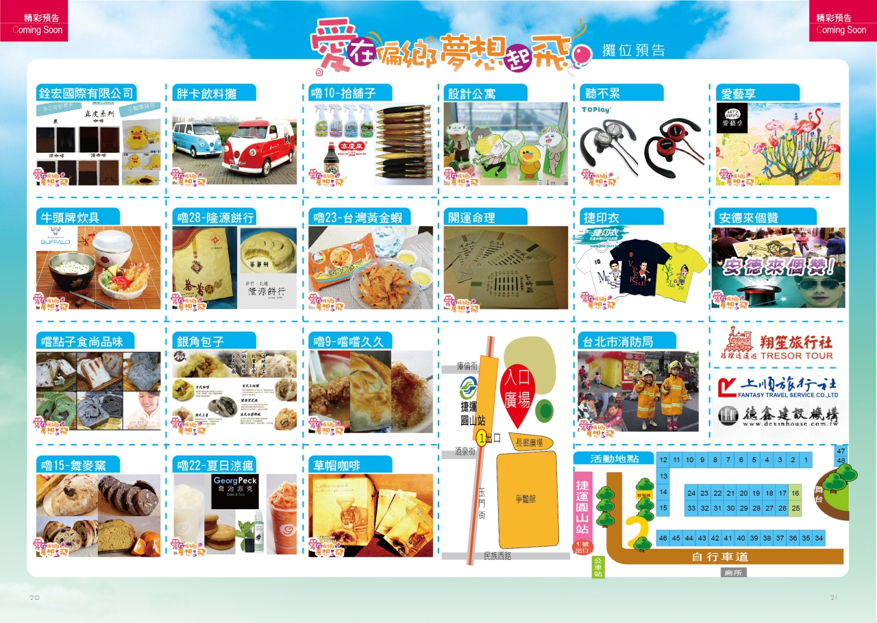 園遊會攤位種類眾多,有許多好玩好吃的唷!可以線上訂購~一起來花博踏青玩樂做公益吧!