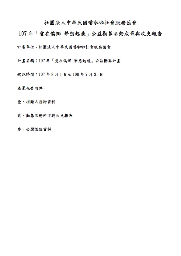 嚕啦啦107年第五屆公益勸募成果與收支報告