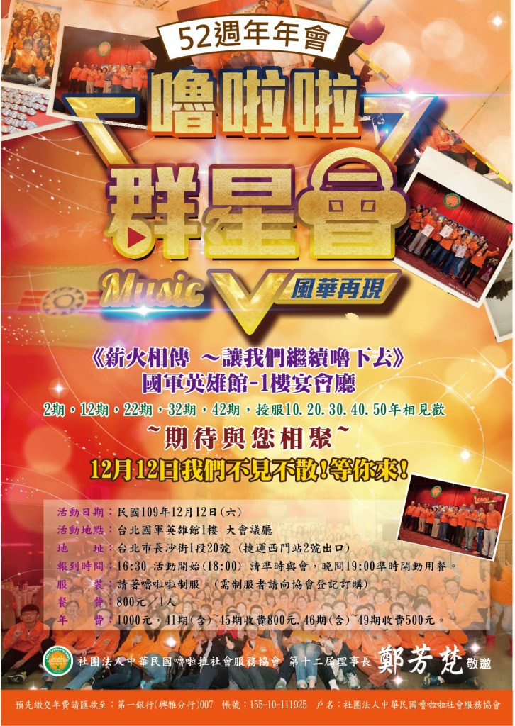 請各期聯絡人,協助發出年會訊息,接龍出席人數,以利安排座位。期待嚕啦啦52來相聚。