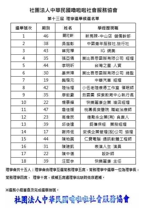 嚕啦啦社會服務協會 第十三屆 選舉公告