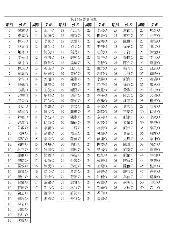 【公告】第14屆會員名單